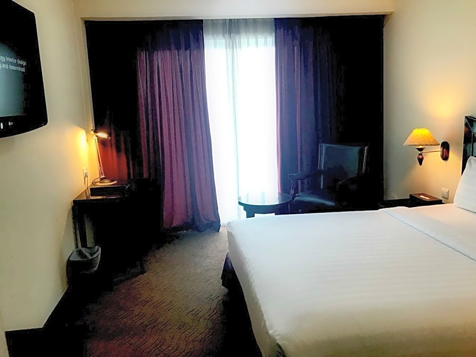 Deluxe is 527 square feet and includes either a king-size bed 150-183 width or a double bed 131-150 width plus balcony.